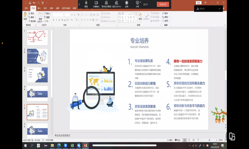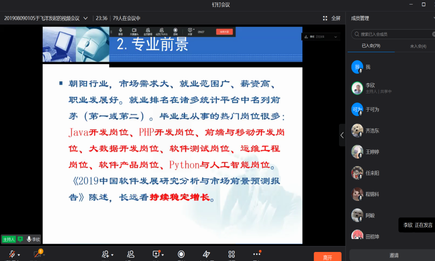 为让2022级新生进一步了解计算机学院的各个专业,公司特举行线上钉钉会议--新生入学教育之专业介绍,让还未入学的新生们对自己所学的专业有更深入的认识。