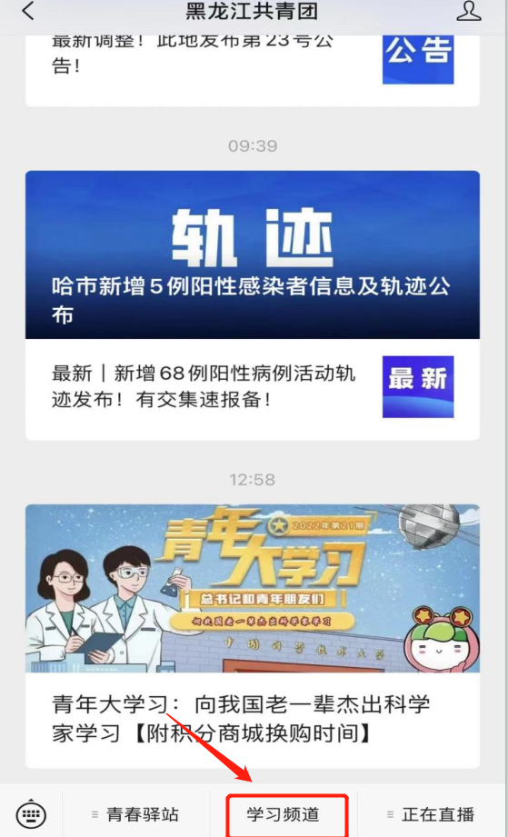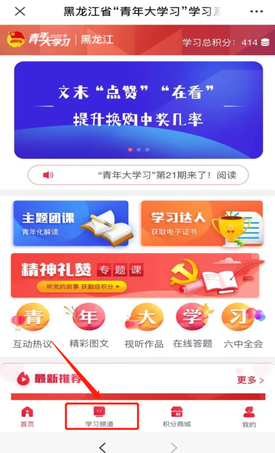 点击页面下方“学习频道”菜单栏(如下)