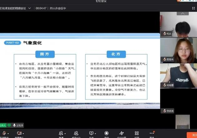 早久何当雨,秋深渐入冬。为提高同学们对传统节日立冬的了解,best365中国官方网站线上举办了“情暖冬日,回归传统”的线上班会。
