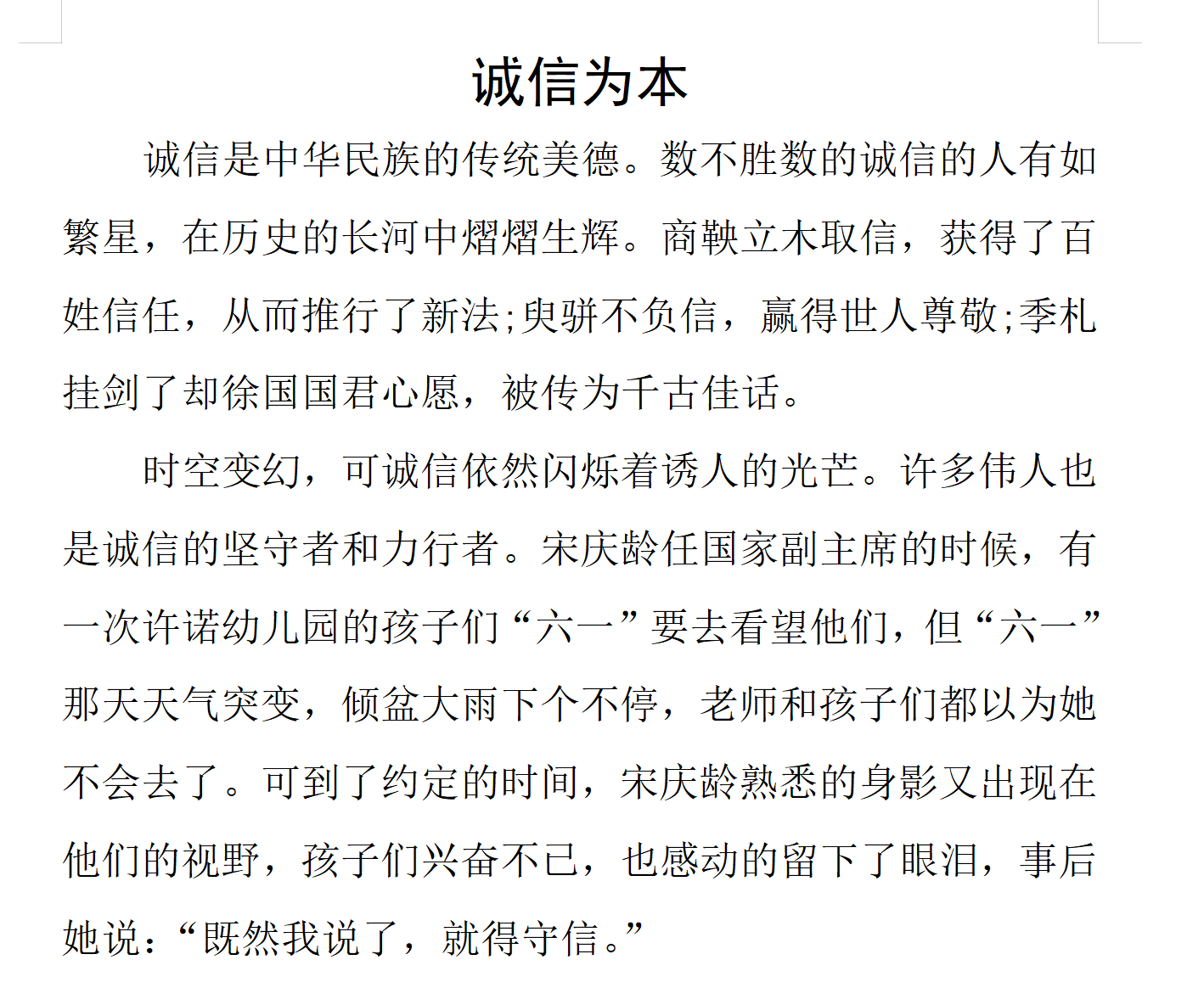 同学们通过演讲的方式表达自己对诚信的重视。一声声的话语,一个个“诚信”的词汇。同学们的演讲中时刻围绕“诚信”二字,只有以诚待人,以信立业,才能赢得他人的尊重和信赖,使人与人之间更加和谐相处,使社会处于良性的发展之中。