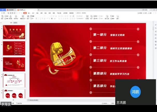 尽忠、尽责、尽心、尽力、尽孝是谓五尽。李海波老师从爱国主义教育、新时代公民道德建设、对工作认真负责、掌握科学学习方法和学会感恩、与爱同行这五个方面开展了五尽教育。五尽主题教育让同学们认识到感恩是为人之基,爱国是立身之本,态度是做事之根,方法是前行导向。在以后的学习生活中,同学们会以五尽教育知识为基础,去开辟自己的新天地。