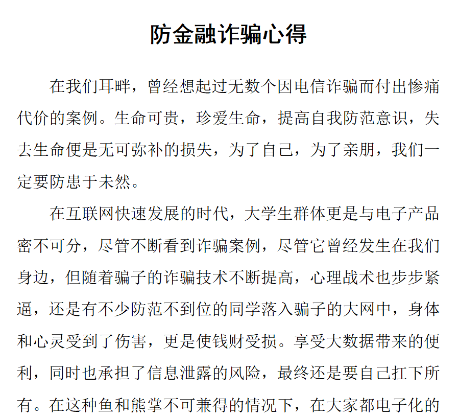 班会后,同学们对于普及金融知识,预防金融诈骗有了一些自己的心得体会,主要包括提高了对诈骗集团诈骗手段的认识和处理能力,增强自我保护意识,学会了利用法律手段维护自身利益。此次防诈活动,不仅提醒员工们面对不实信息要保持理性,冷静辨真伪,引导员工增强自我保护意识,守护好切身利益,也进一步普及了金融知识,让金融知识真正地服务大众,营造防诈宣传人人有责的良好氛围。
