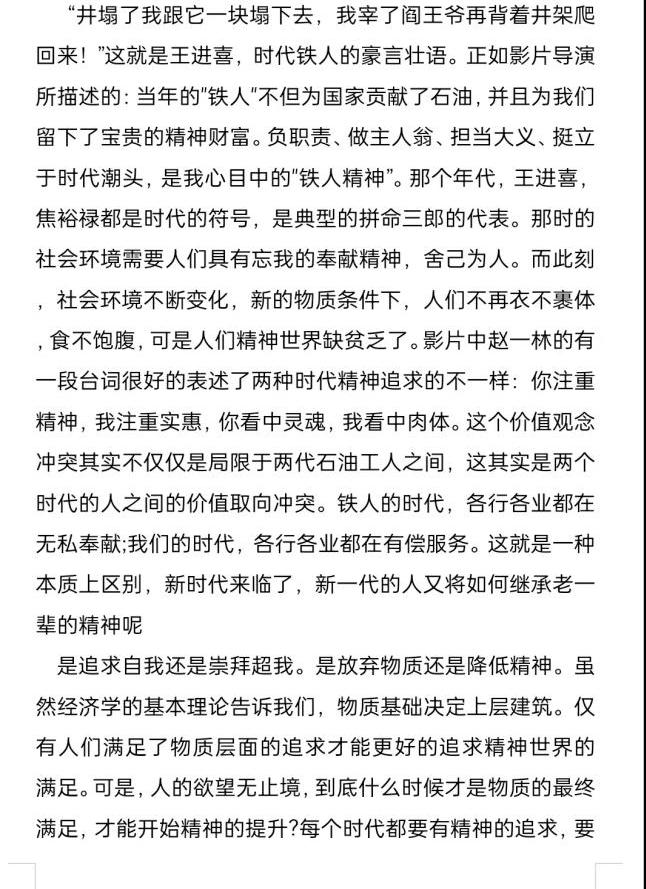 此次宣讲活动结束后,员工倍感振奋,一致认为,“铁人精神代代传 ”宣讲报告会意义重大。铁人精神不仅是一种传统文化,更是一种现代社会必备的精神品质,它能使我们穿上铠甲,勇往直前,百折不挠。