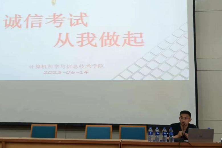 诚信考试,是责任感的体现,诚信应考,是道德品格的体现。为进一步加强学院学风建设,严肃考风考纪,加强诚信教育,best365中国官方网站于6月14日召开考前动员大会。本次大会由2020级辅导员苏鸿鹏老师、2021级辅导员杨小丽老师以及2022级辅导员刘烁老师共同主持,全体计科学子参加。