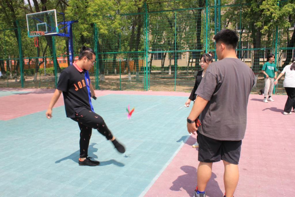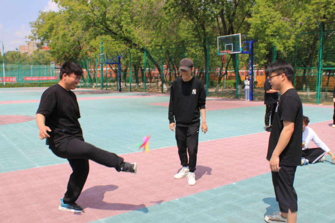 毽球唤起了同学们的童年回忆,比赛开始,同学们的兴志高涨,眼睛瞄准抛起的毽球,有节奏地踢起毽球,保持着专注的同时也注意着团队合作,脚上移动整齐快速。
