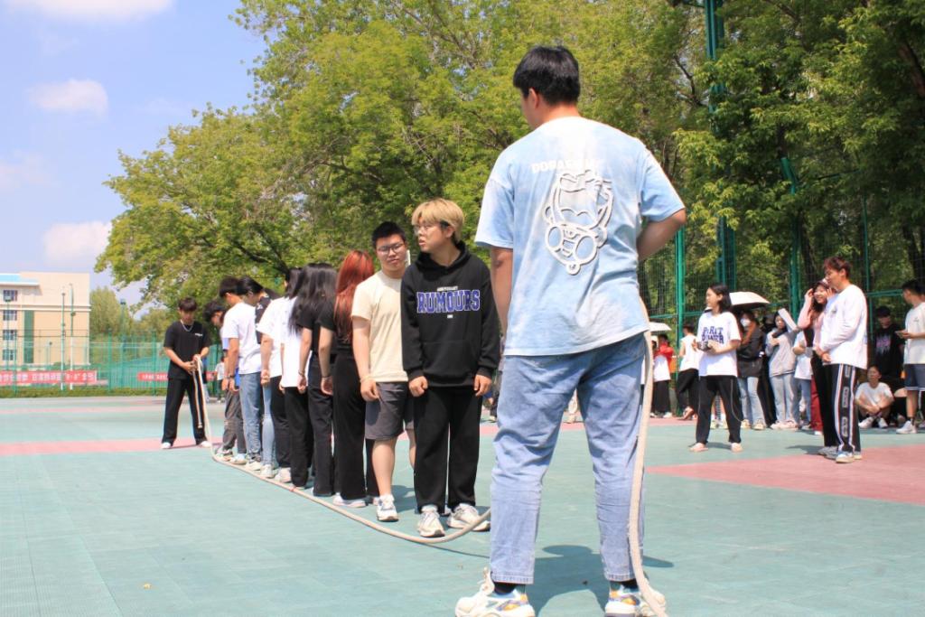 裁判的一声“比赛开始”,同学们就展开了激烈的比拼。大绳摇动,绳与地面相触作响。“预备~起跳”,多日训练的结果得到展示,团队的默契在此刻显现。每跳一下,都是学院团队凝聚力的彰显,有力的指挥和节奏的掌握给同学们的青春道路上谱写了跳跃的乐章。