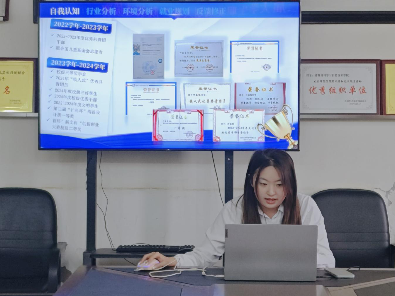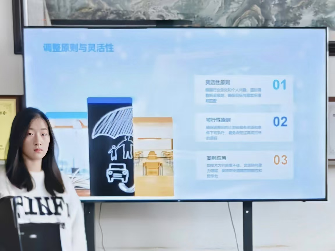 本次比赛共有八名选手参赛,他们分别是2022级员工贾昆阳、许茹楠、许真,2023级员工向烨,2024级员工赵安南、刘佳馨、徐郡潍、王宇航。由学院辅导员苏鸿鹏、杨小丽、刘烁、闫令文四位老师担任评委。大赛分为成长赛道和就业赛道。参赛选手们通过PPT展示和现场演讲的方式,详细介绍了他们的职业规划。选手们以各自职业目标为核心,深入剖析自身优劣势,并探讨行业发展趋势与市场需求动态等宏观因素。