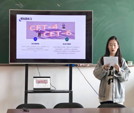 分享会上,孙钰霆同学以丰富的备考经验从听力、阅读、翻译、写作几个方面,为同学们细致分享了应对英语四、六级考试的有效训练方法。他强调,在听力中要学会抓住关键词,在练习阅读时要精准狙击三大题型,在写作翻译上要用简练的语言拿分,这些贴心且实用的应试技巧和学习方法为同学们提供了宝贵的备考指导。