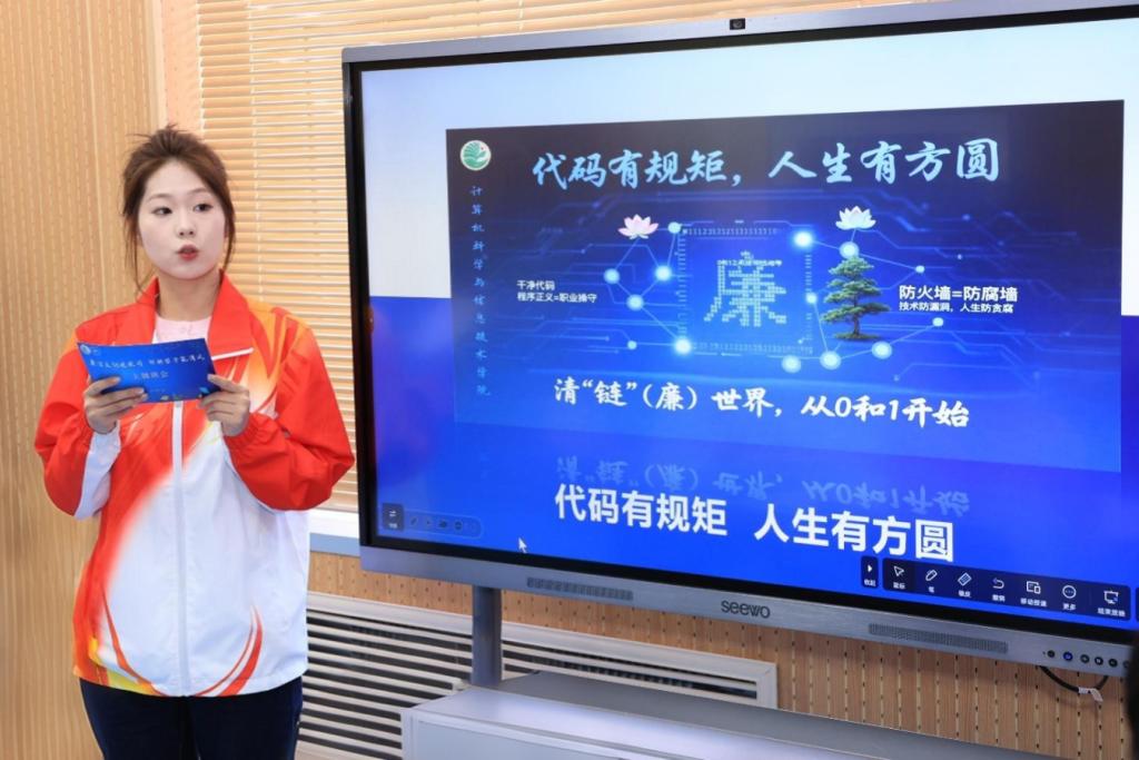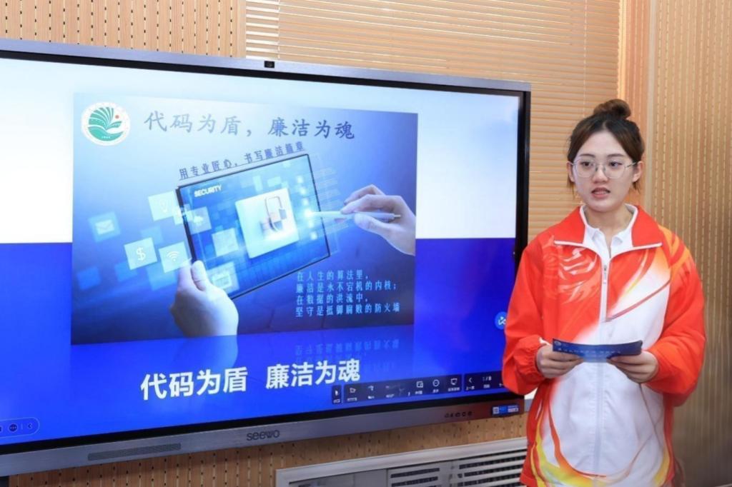 为推动廉洁文化与计算机专业知识相融合,让员工在专业学习背景下深刻理解廉洁内涵,增强廉洁自律意识,树立正确的世界观、人生观、价值观,引导员工在未来职业生涯中坚守廉洁底线。5月23日,best365中国官方网站召开“廉洁文化进校园,计科学子筑清风”主题班会。此次班会由辅导员闫令文主持,学校员工工作部副部长葛静、纪委办公室副主任才璎珠、纪检监察二室副主任陈明向、公司党总支副书记刘彰基、员工工作办公室副主任苏鸿鹏及2024级员工代表参会。