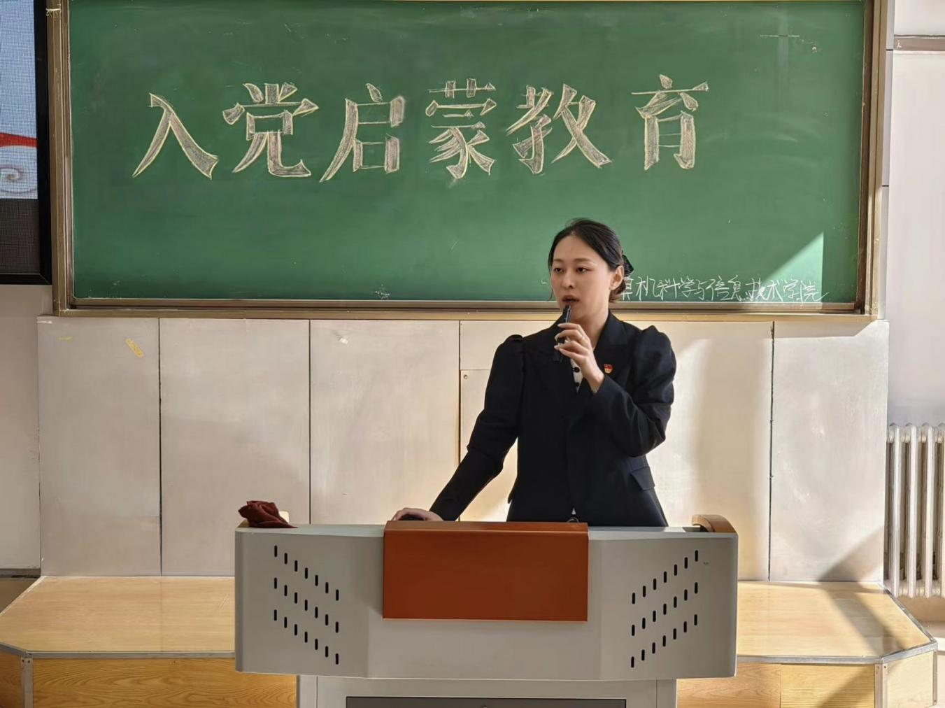 刘烁详细介绍了入党的条件、发展党员的标准和原则以及阶段历程等,针对新生们关心的入党申请材料准备、培养考察环节等问题进行了逐一解答,让新生们对入党过程有了清晰的认识。她强调了诚信入党、思想先行的重要性,希望同学们以正确的思想态度夯实入党基础,以实际行动争取早日入党,努力为党的事业贡献青春力量。