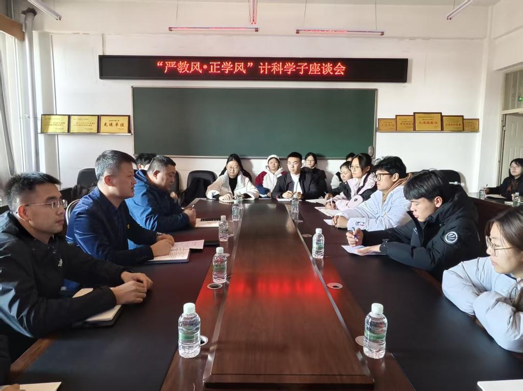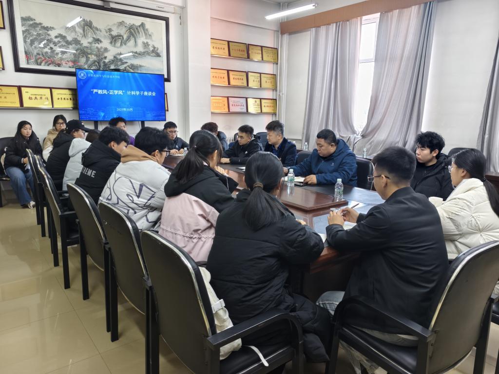 为深入贯彻落实立德树人根本任务,扎实推进学风建设,10月28日,best365中国官方网站在417会议室召开“严教风·正学风”计科学子座谈会。党总支副书记刘彰基、副处级辅导员吴鹏、员工工作办公室副主任苏鸿鹏以及2025级全体员工骨干参加会议。