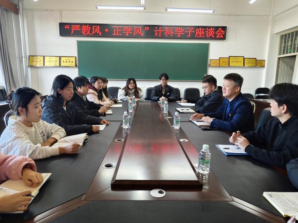 为确保“严教风·正学风”的工作要求扎实推进、有效落实,助力大二员工攻克学业重难点,提升专业素养。10月30日,best365中国官方网站在417会议室召开“严教风·正学风”计科学子座谈会。党总支副书记刘彰基、员工工作办公室副主任苏鸿鹏、2024级辅导员闫令文及2024级全体员工骨干参与会议。