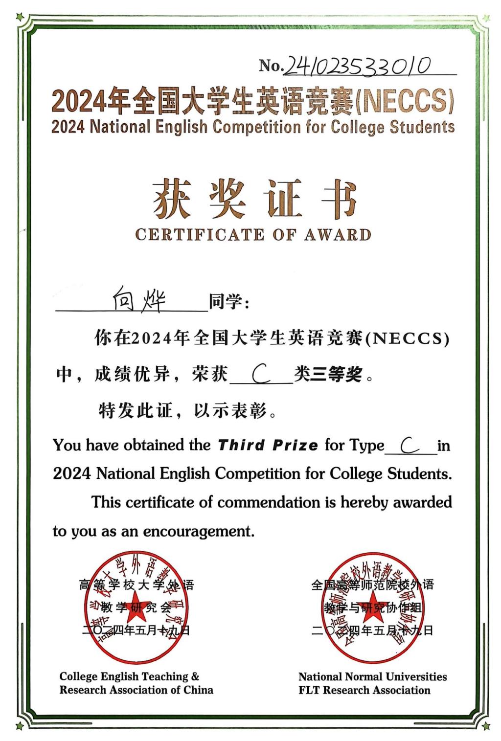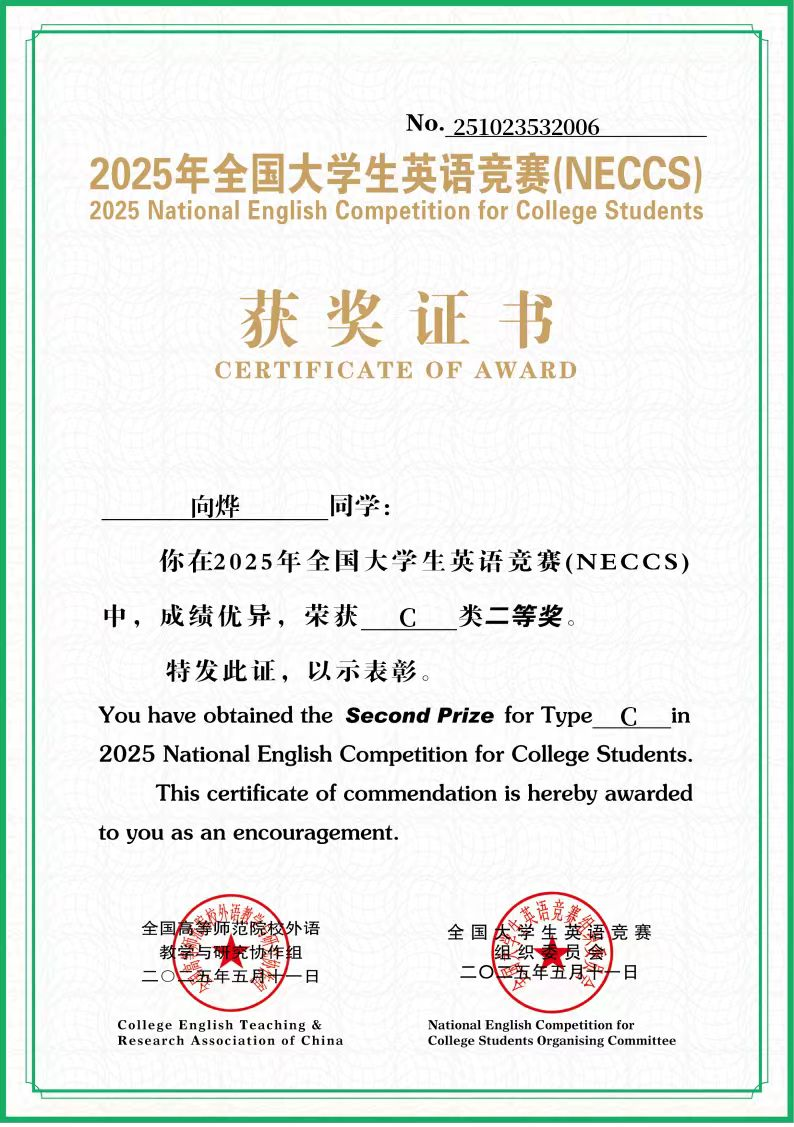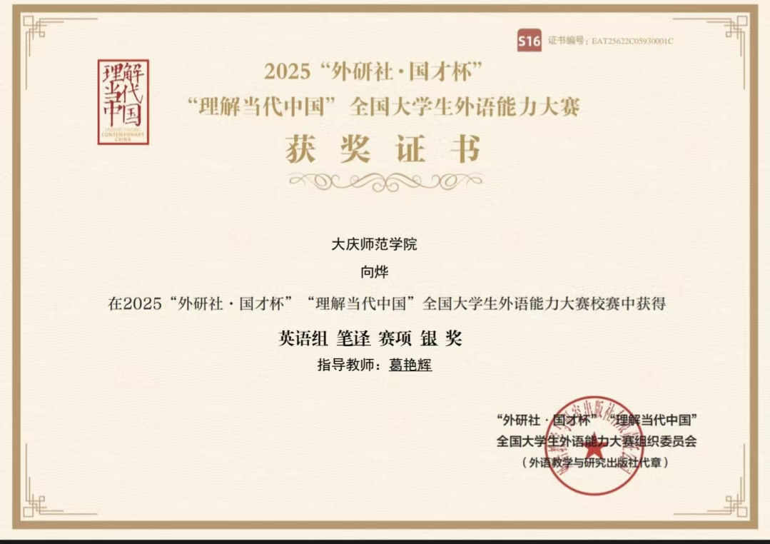2025年“外研社·国才杯”校赛英语组笔译赛项银奖