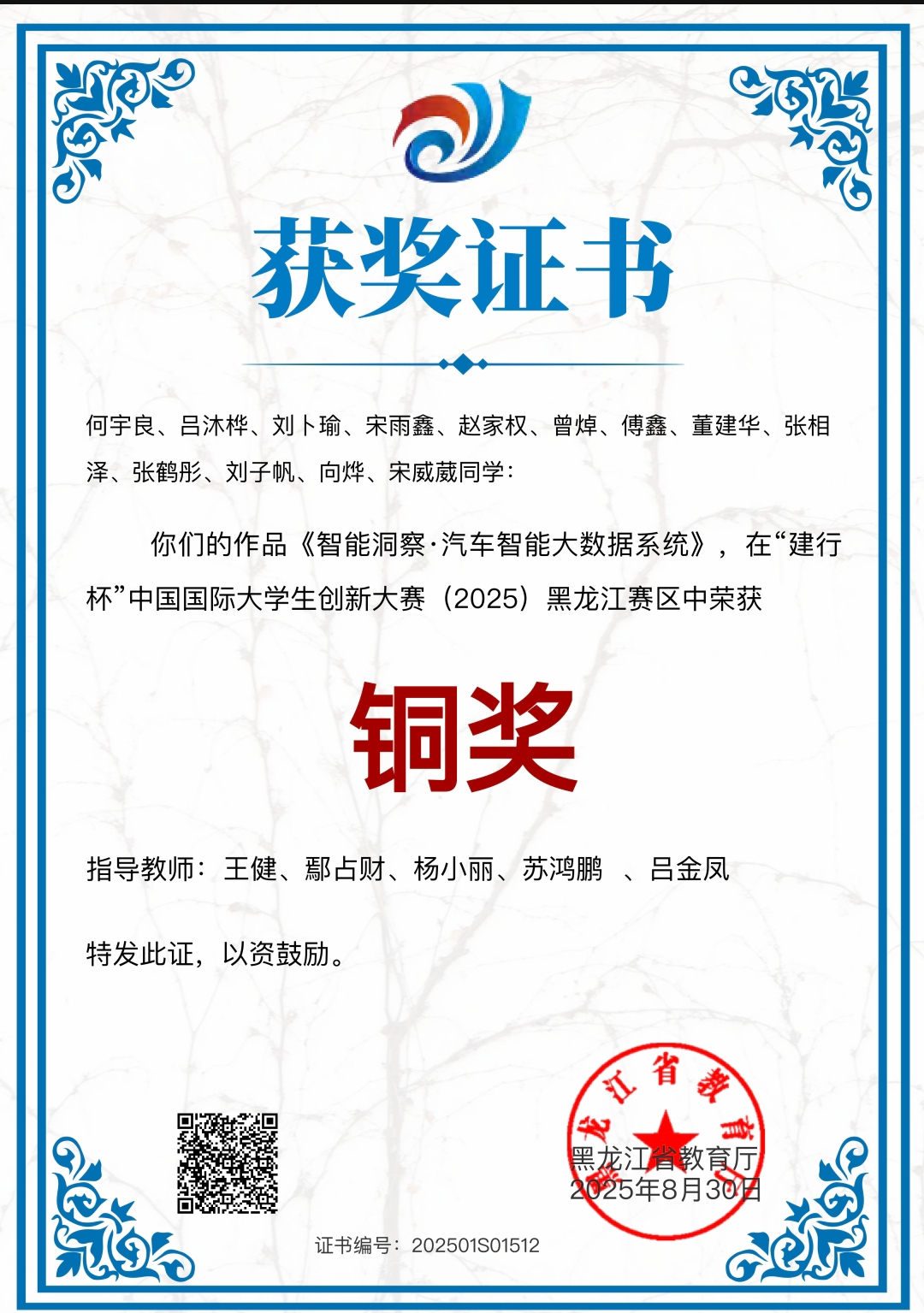 2025年“建行杯”中国国际老员工创新大赛(2025)黑龙江赛区铜奖