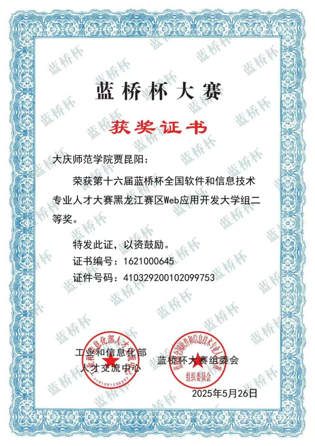2025年第十六届蓝桥杯全国软件和信息技术专业人才大赛黑龙江赛区Web应用开发大学组二等奖