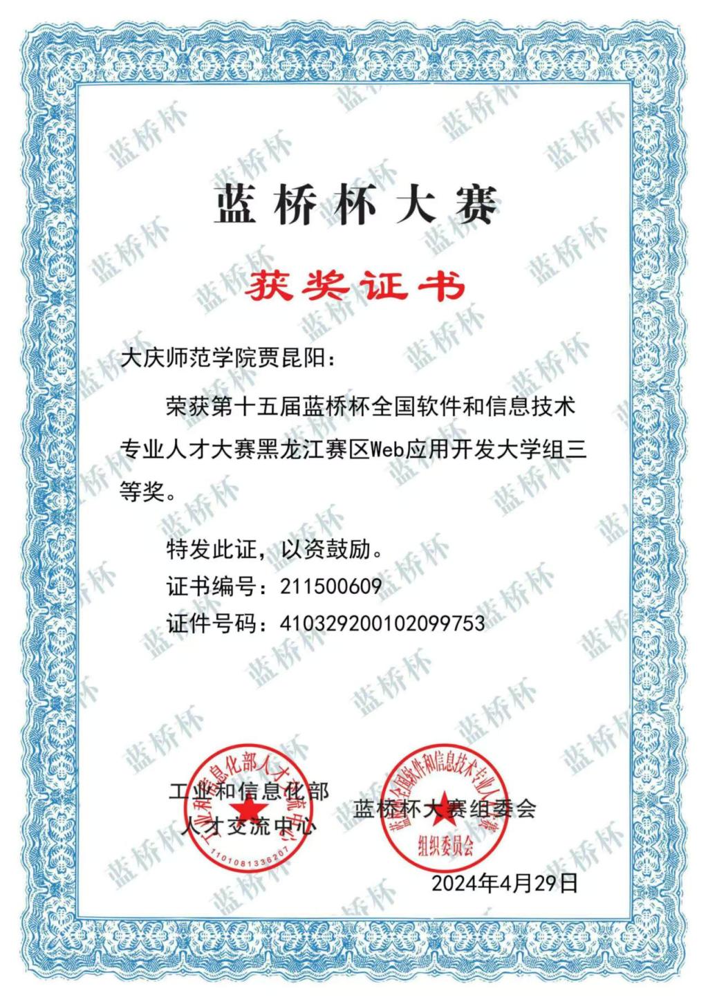 2023年第十五届蓝桥杯全国软件和信息技术专业人才大赛黑龙江赛区Web应用开发大学组三等奖