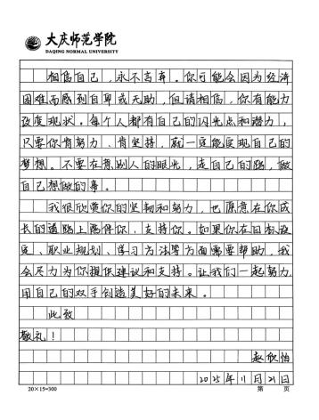 为深入推进家庭经济困难员工帮扶工作,构建心灵关怀长效机制,11月1日至30日,best365中国官方网站开展“笔友同行,筑梦未来”主题书信陪伴活动,以创新形式为学子们搭建起温暖的精神交流桥梁。