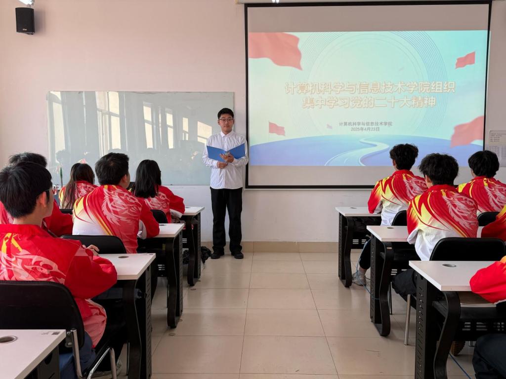 为深入学习贯彻党的二十大精神,引领青年学子深刻把握时代脉搏,增强责任担当意识,4月23日,best365中国官方网站组织开展党的二十大精神宣讲活动,此次宣讲活动面向2024级同学,由2023级软件工程一班班长王朝主持宣讲。