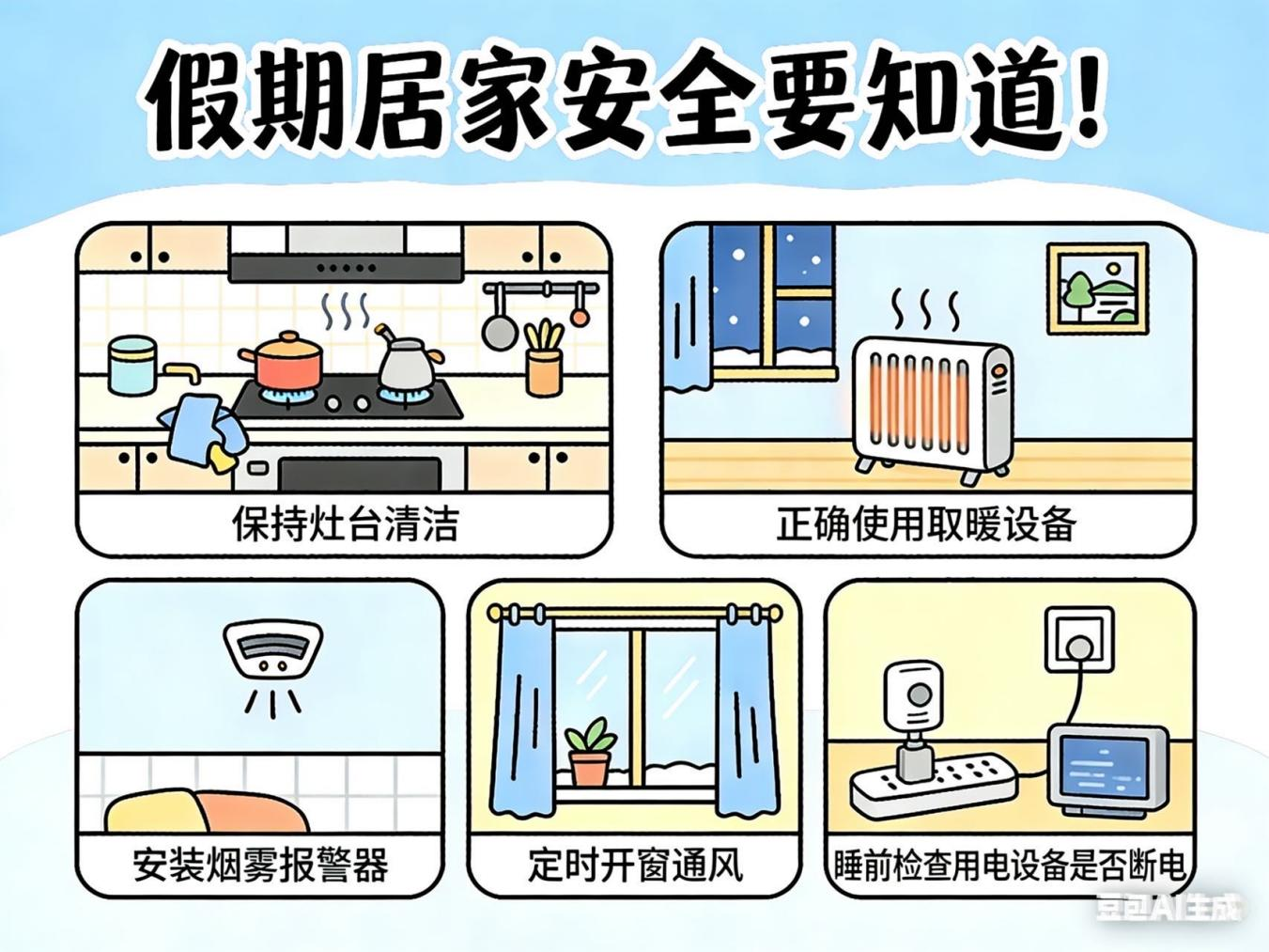 寒假居家时间较长,假期取暖、用电用火频繁,安全隐患不容忽视。