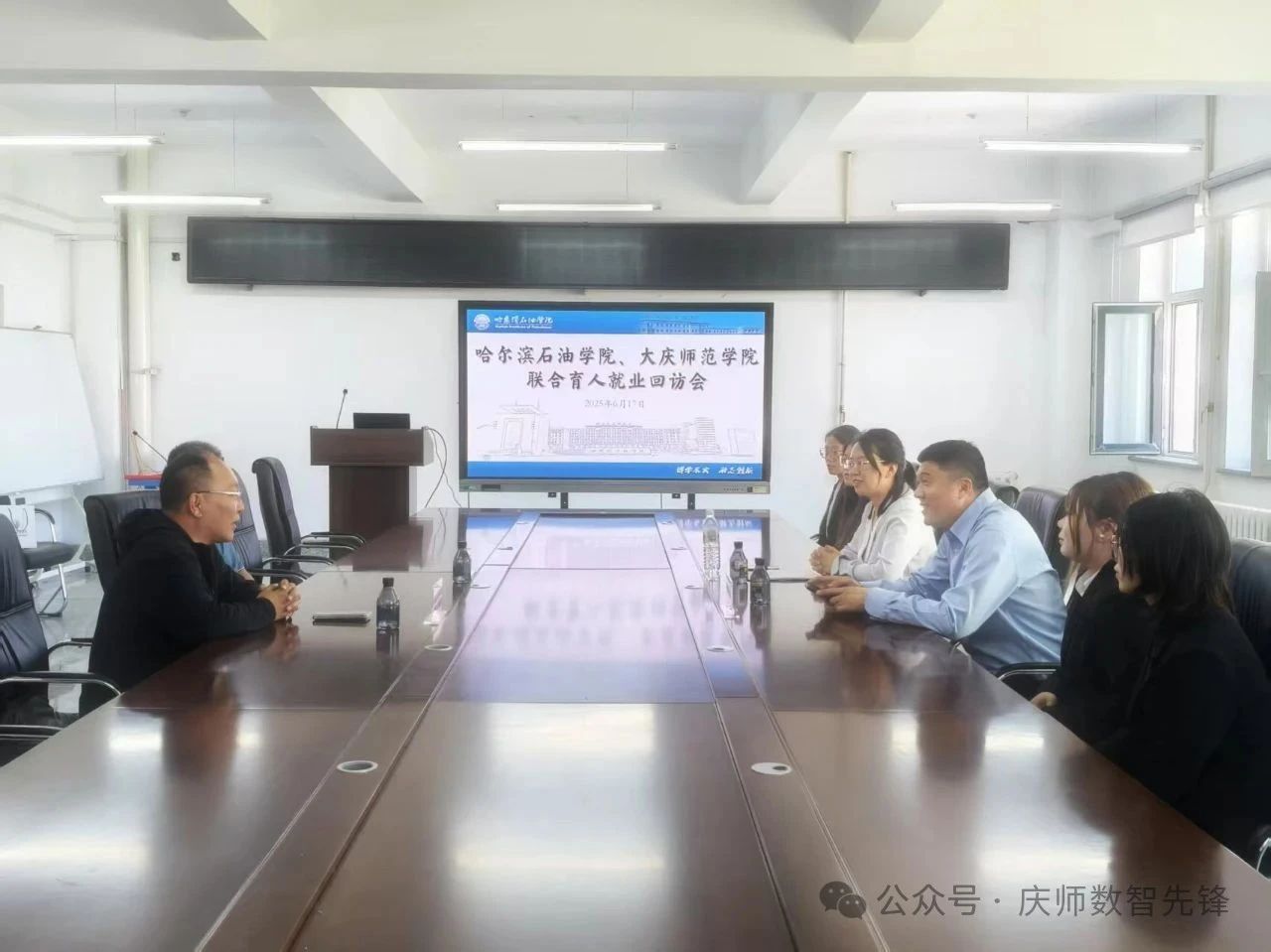 沙龙结束后,王健进行了公司就业基地回访工作,在哈尔滨石油学院信息工程学院看望公司2025届数据科学与大数据技术专业毕业在此工作的4名毕业生。哈尔滨石油学院副董事长冯研、哈尔滨信息工程学院经理朱佳梅教授出席了回访活动。朱佳梅首先介绍员工实习期间的基本情况,她用实例和数据,介绍了这4名毕业生在校期间的学习、生活以及社会实践等多方面的表现,充分肯定了他们积极向上的精神风貌和扎实的专业素养。王健详细了解了他们的工作内容、职业发展状况以及在新环境中的生活适应情况。冯研在交谈中对几位同学提出了殷切希望,他鼓励同学们在新的工作环境里继续保持学习的热情,不断提升自我,勇于面对挑战,在工作岗位上发光发热,为母校争光添彩。员工们纷纷表示,在学校所学的专业知识为他们如今的工作奠定了坚实的基础,使他们能够快速适应岗位需求并承担重要任务。他们也分享了在工作中遇到的挑战与收获,表达了对母校的感激之情以及对未来的憧憬与规划。