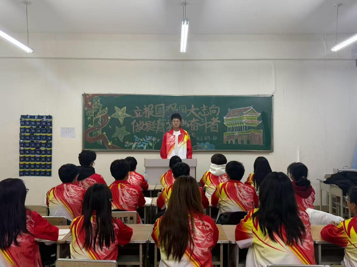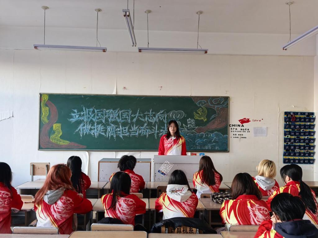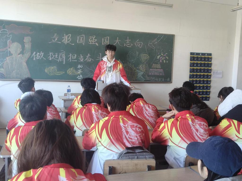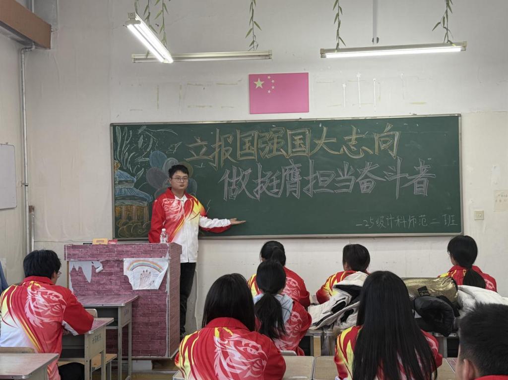 班会上,各班负责人对“立报国强国大志向 做挺膺担当奋斗者”主题进行了深入解读,细致阐释其背后蕴含的深远意义与时代价值,引导同学们感悟奋斗精神的内涵,鼓励大家将远大志向落实到日常学习与实践中,以青春之力践行使命担当。2025级数字媒体技术一班高铭涵同学发言表示,将以此次班会为契机,把“立报国志、做奋斗者”的信念刻进日常,勤学专业本领、主动参与实践,用实际行动诠释青年的挺膺担当。
