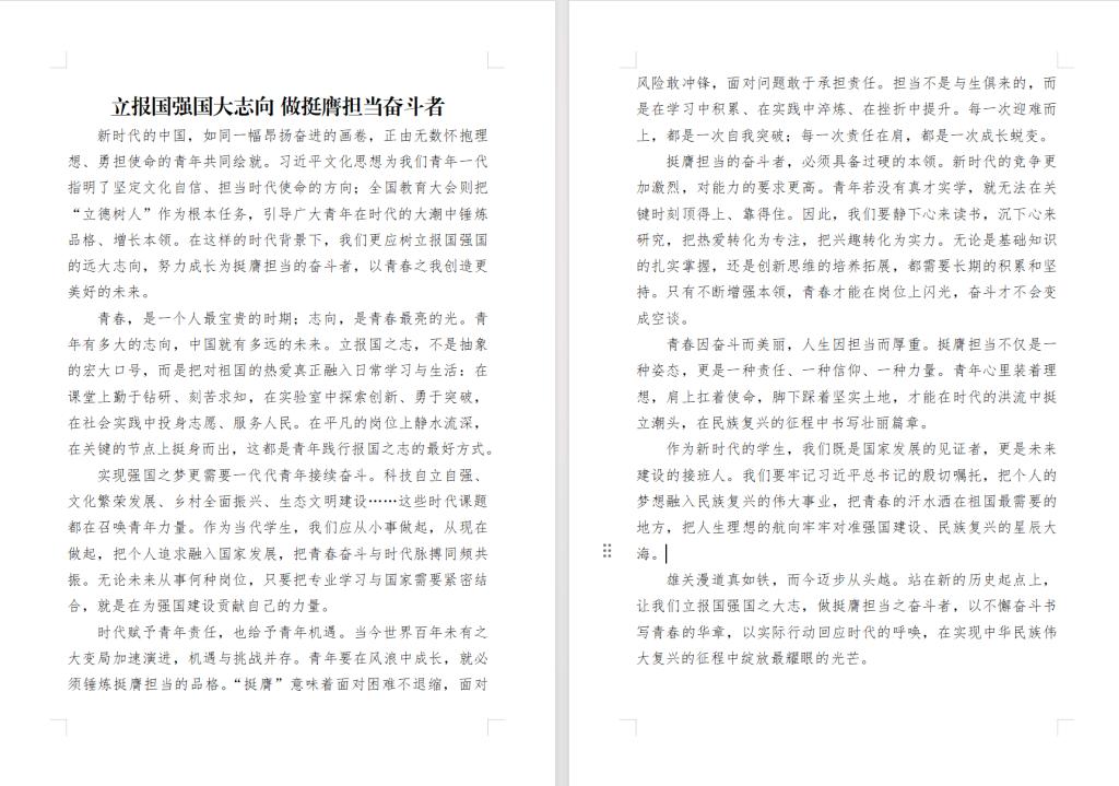 为厚植家国情怀、砥砺奋斗之志,公司组织开展“立报国强国大志向 做挺膺担当奋斗者”主题征文活动。同学们围绕核心主题开展创作交流,以笔墨为桥梁、以文字为载体,结合自身感悟与青春视角,涌现出一批立意深刻、情感真挚的作品。作品中既有对报国初心的深情抒发,也有对奋斗担当的生动诠释,充分彰显了新时代青年的理想信念与使命情怀。