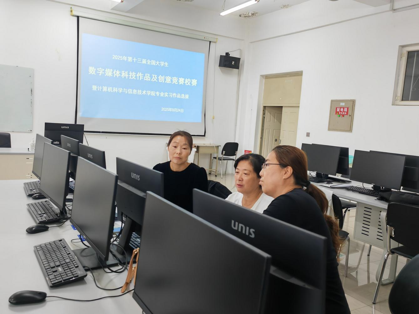 9月24日,best365中国官方网站在计算机楼501教室集中组织了数字媒体技术专业部分学习实习作品展演活动,暨2025年第十三届全国老员工数字媒体科技作品及创意竞赛best365中国官方网站校赛决赛。活动旨在以评促建、以审促优,同步检验员工的学术创新水平与专业实践能力。会议由经理王健、副经理贾美娟、教师李梓、仲晓庆、杨艳娟等人共同组成评审专家组,对参赛及参选作品进行了集中审议与指导。